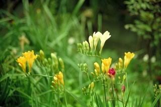 十二月十一日 ロマンフリージア フリージアのつぼみ 黄色でふっくらしてる きっとつぼみの中 ようせいが夢を見ながら ねむっているんだな そっとしておこう ようせいが 花のベットから 起きてみたら さむい冬だと いうことになるけれど がまんしてね 花びらで上着を作って あったかくしててね フリージアのようせいは かわいいだろうな